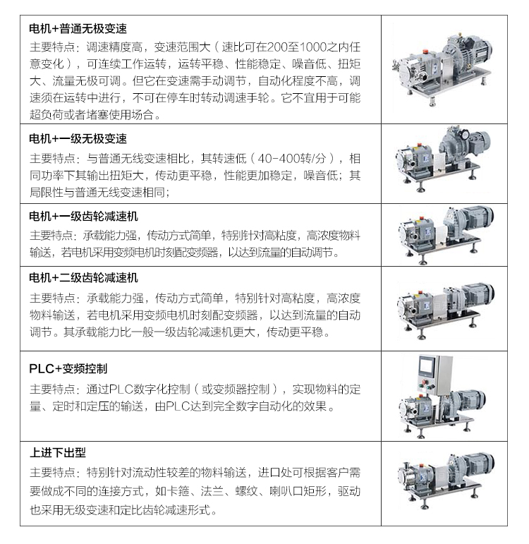 特點:可以輸送高粘度物料、可輸送稀薄介質、可輸送對衛生要求較高的物料、被稱爲萬能輸送泵,沒有易損件、非常耐用。